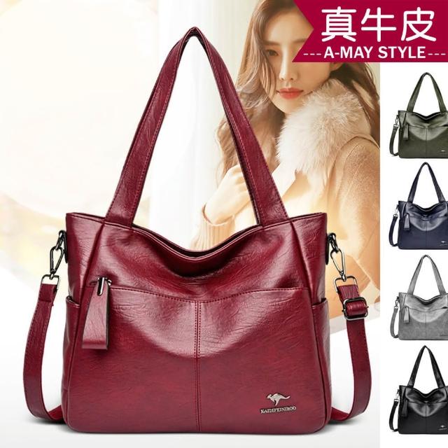Amay Style 艾美時尚免運 女包 真皮包 側背包 復古牛皮大容量肩背托特包(5色.現貨+預購)