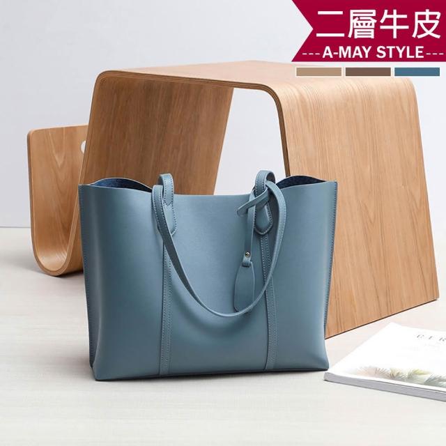 Amay Style 艾美時尚免運 真皮女包 側背包 通勤包 簡約牛皮大容量吊飾托特包(4色.現貨+預購)