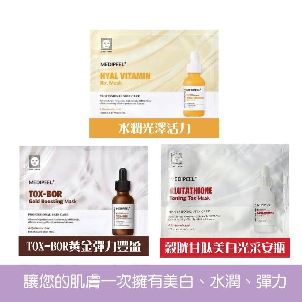 MEDI-PEEL美蒂菲 水潤光澤/升級 TOX-BOR黃金彈力豐盈/白-升級版 穀胱甘肽面膜25ml10入一盒