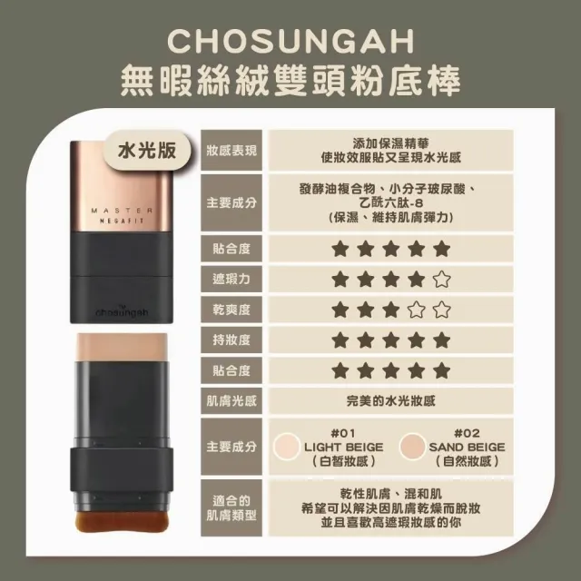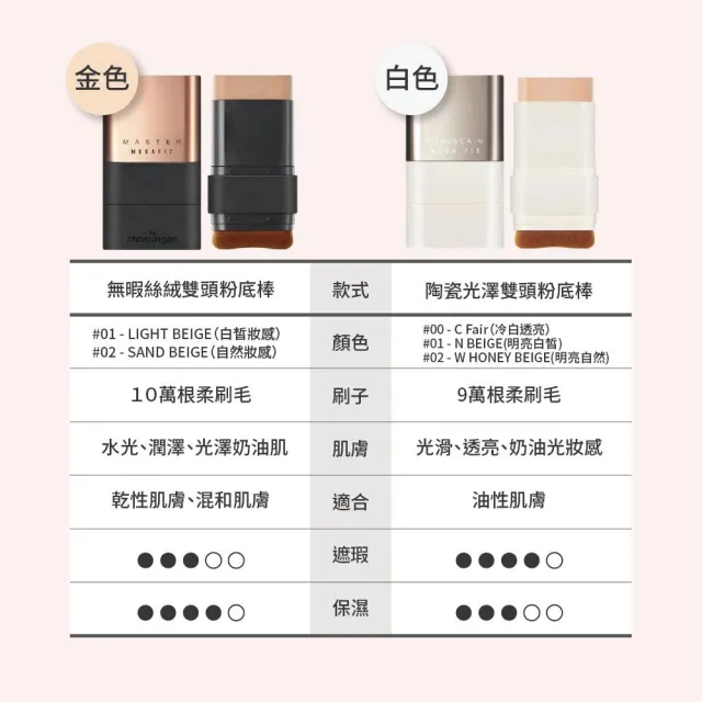 ver.22 chosungah最新 金色升級 無暇絲絨雙頭粉底棒 完美遮瑕 粉底棒 金泰熙 曹成雅御用 陶瓷光澤雙頭粉底棒
