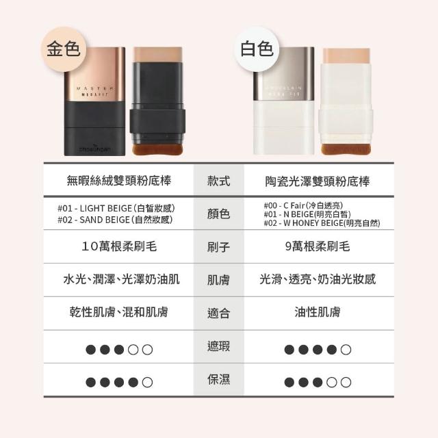 ver.22 chosungah最新 升級 金色x無暇絲絨|白色x陶瓷光澤 雙頭 粉底棒 完美遮瑕金泰熙 曹成雅御用