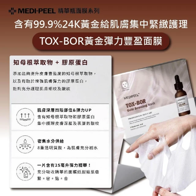 MEDI-PEEL美蒂菲 水潤光澤/升級 TOX-BOR黃金彈力豐盈/升級版 穀胱甘肽面膜25ml 《10入_袋裝》