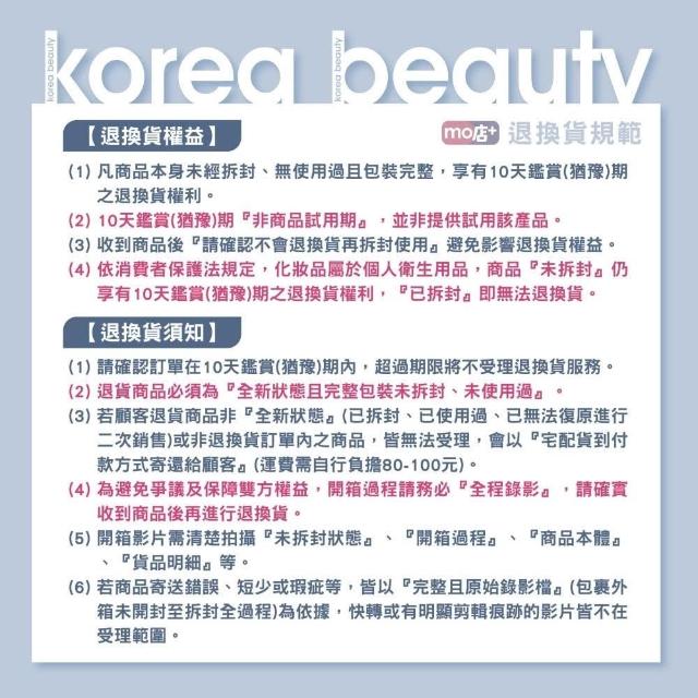 - 個人衛生用品除商品本身有瑕疵外,未拆封商品仍享有十天猶豫期之退貨權利。但已拆封 (如剪標、下水等情形…),依據《通訊交易解除權合理例外情事適用準則》第二條規定,商店無法接受退換貨。