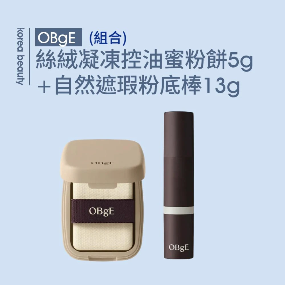 OBgE*官方公司貨*絲絨凝凍控油蜜粉餅5g+自然遮瑕男士粉底棒13g(組合)