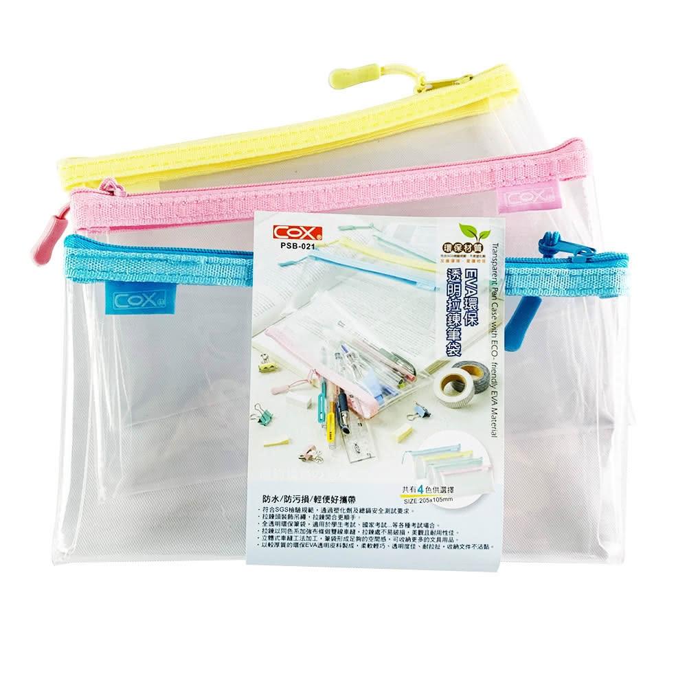 COX 三燕-慢慢買百貨-PSB-021環保透明拉鍊筆袋 文具(學校 辦公 學生 考試 文具)