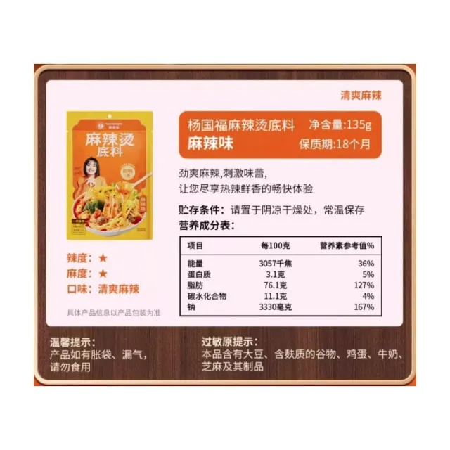 楊國福麻辣燙經典 麻辣燙底料 麻辣燙調味料135g*3包買3送3