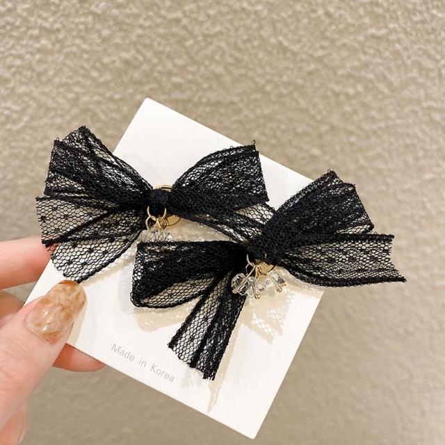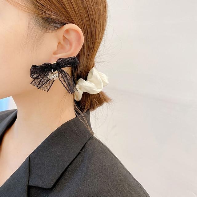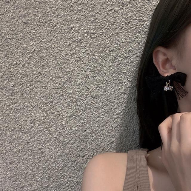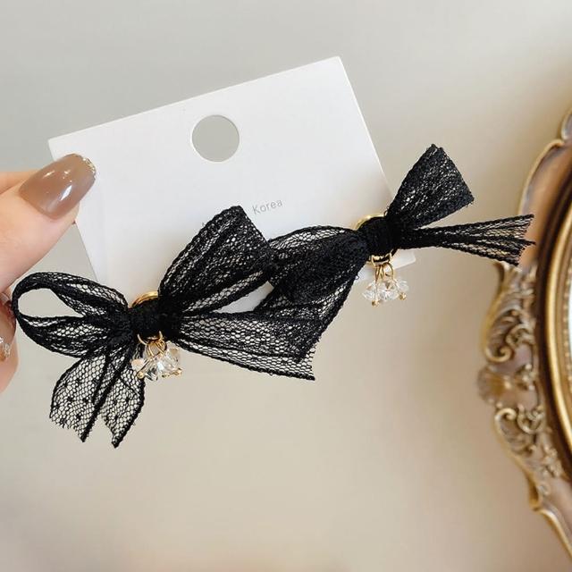 BBHONEY韓國設計 魅力黑蕾絲蝴蝶結耳環(蝴蝶結飾品)