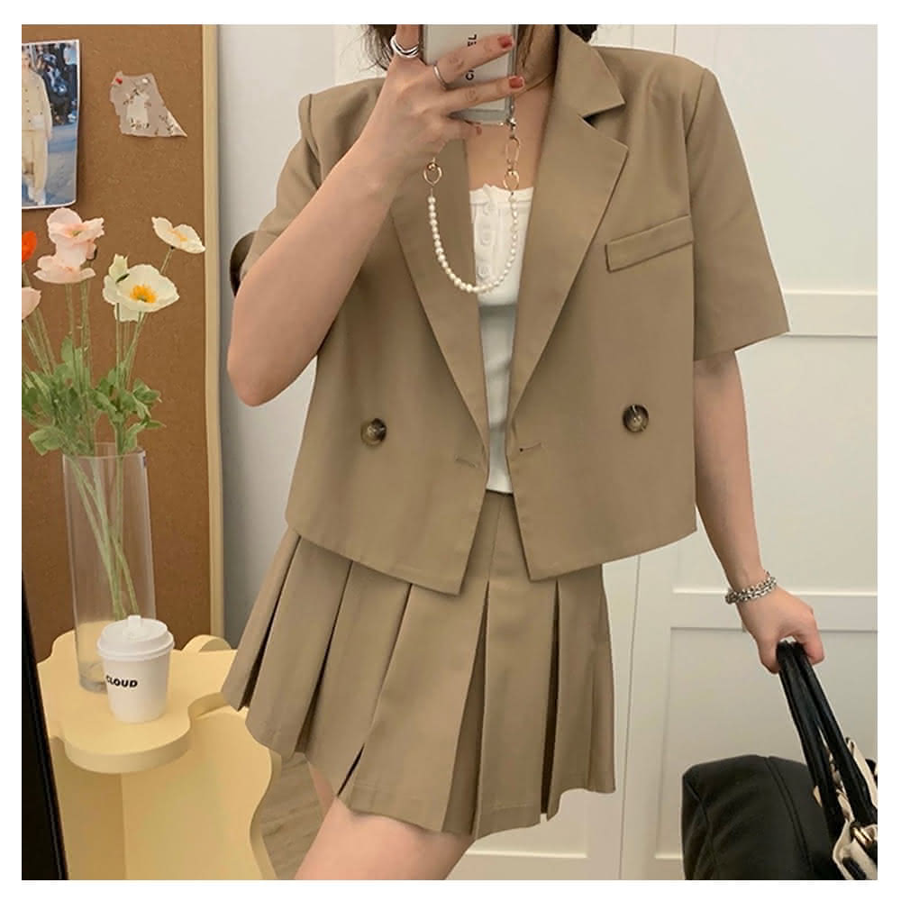 BBHONEY質感西裝外套 百褶裙套裝(網美熱搜1+1二件套)
