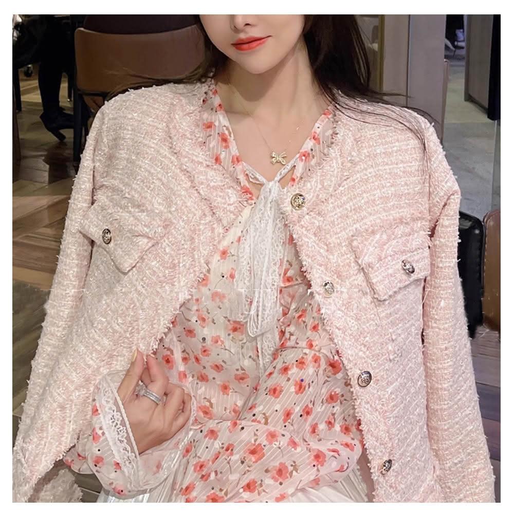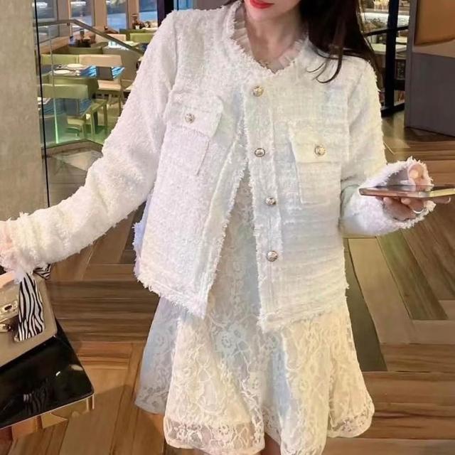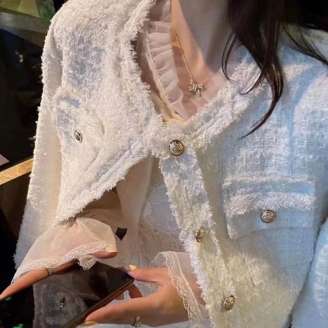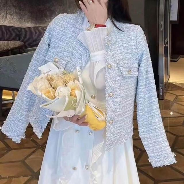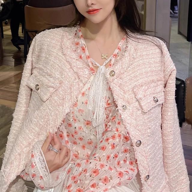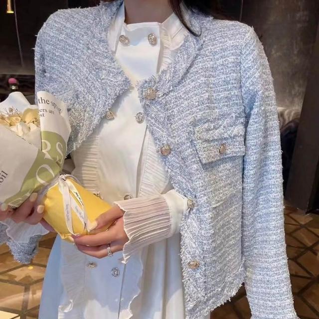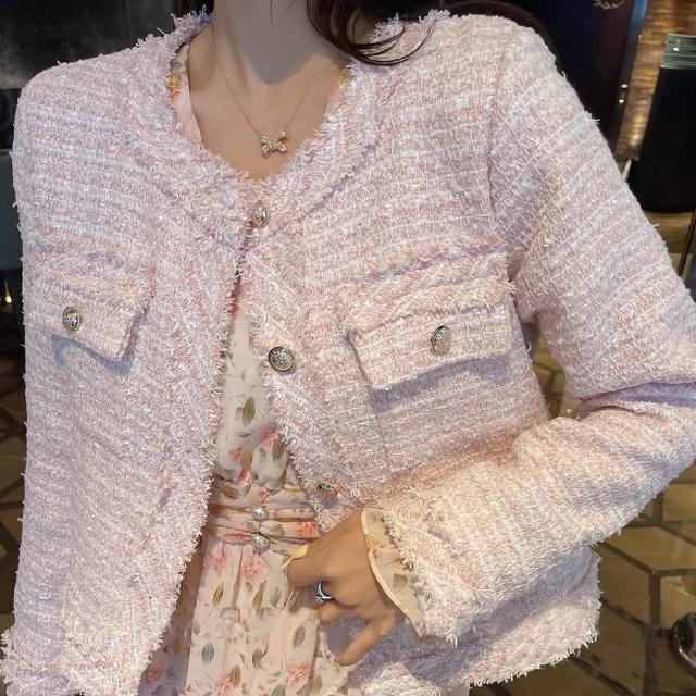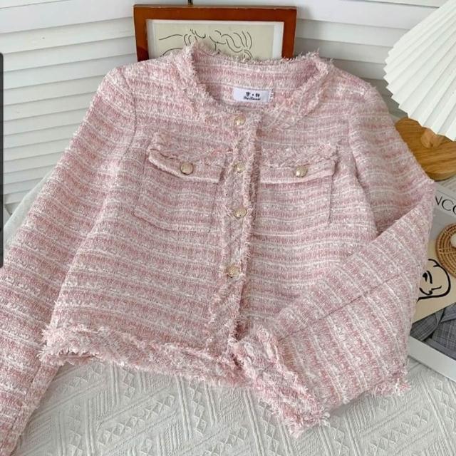 BBHONEY氣質小香風外套 毛鬚編織女西裝外套(粉/白/藍)