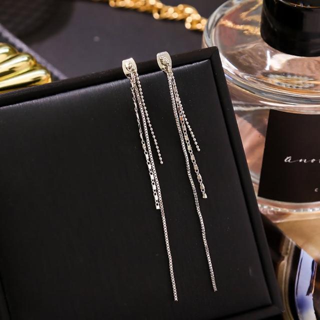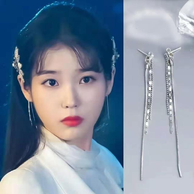 BBHONEY韓星iu李知恩同款耳環線條長款流蘇耳釘氣質耳墜(網美必備款)