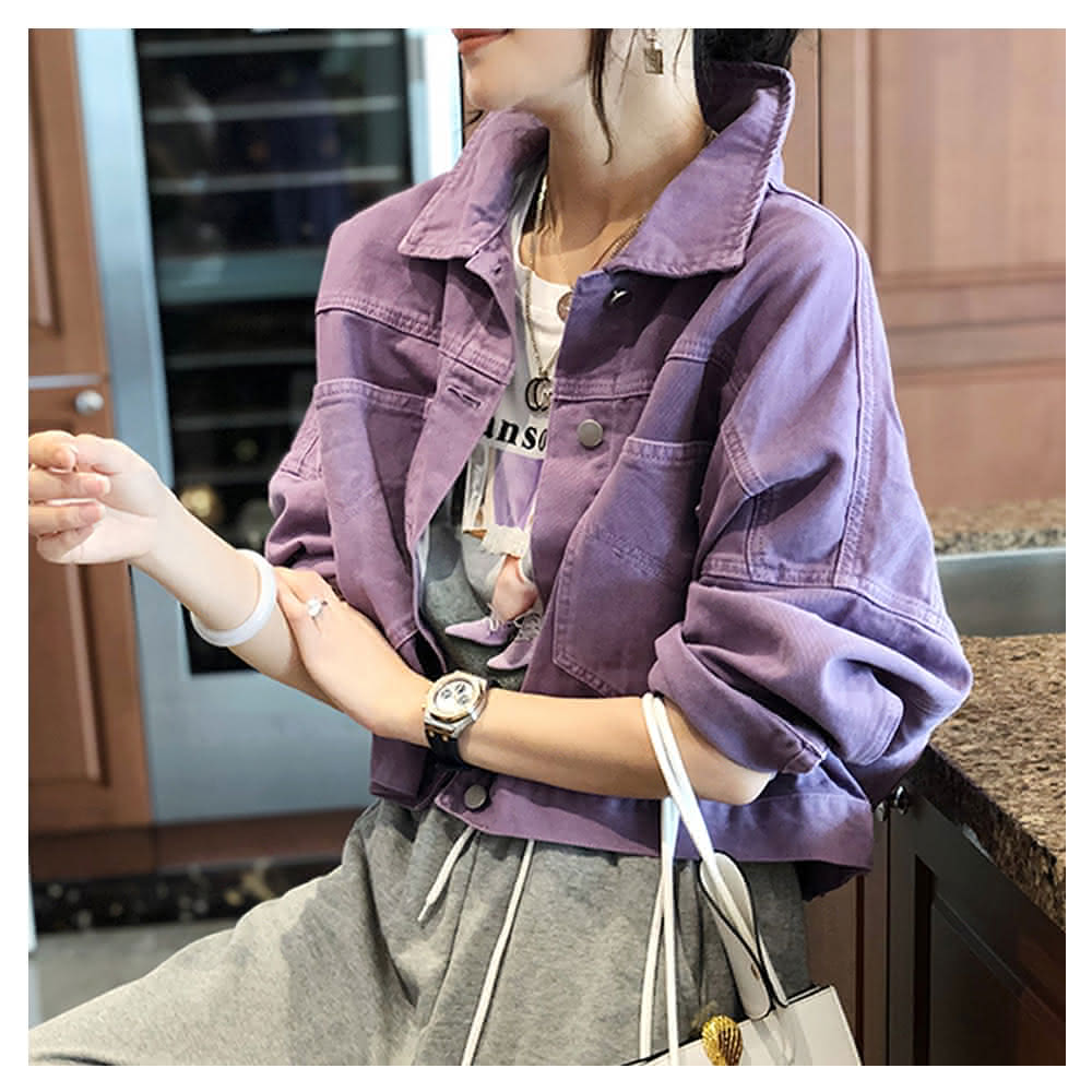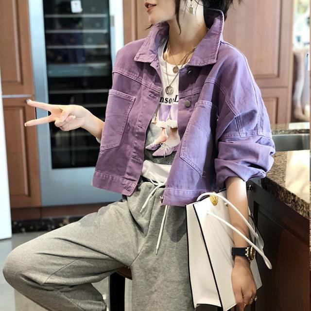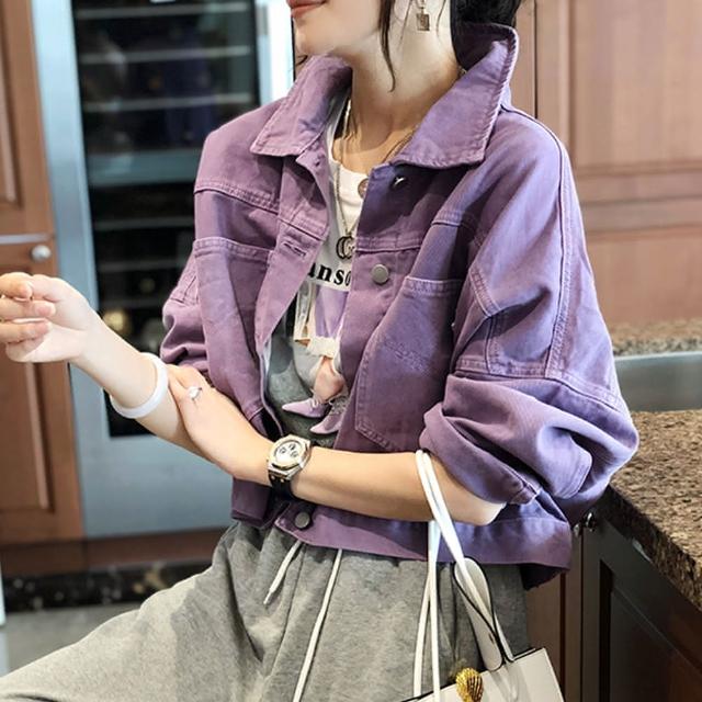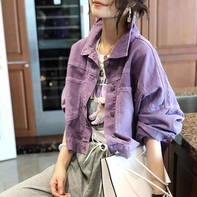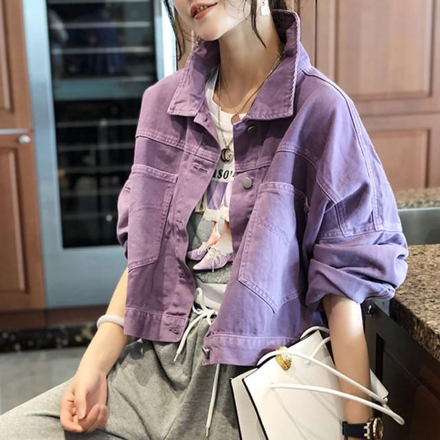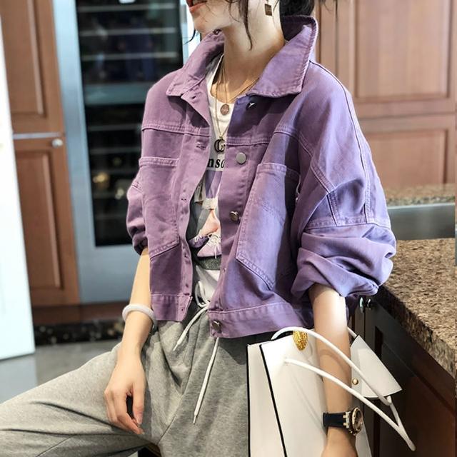 BBHONEY韓版寬鬆紫色oversize牛仔外套(網美必備款)