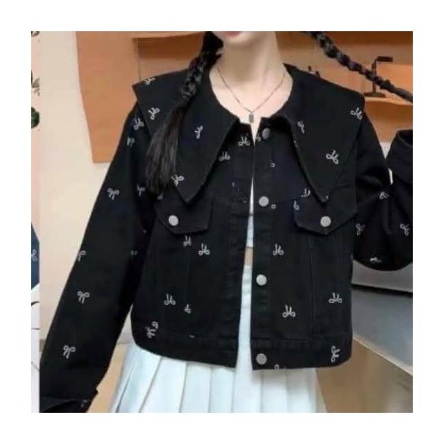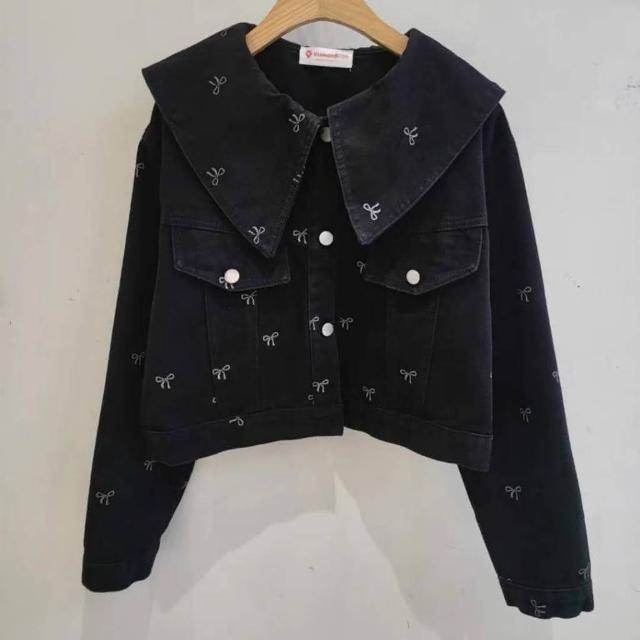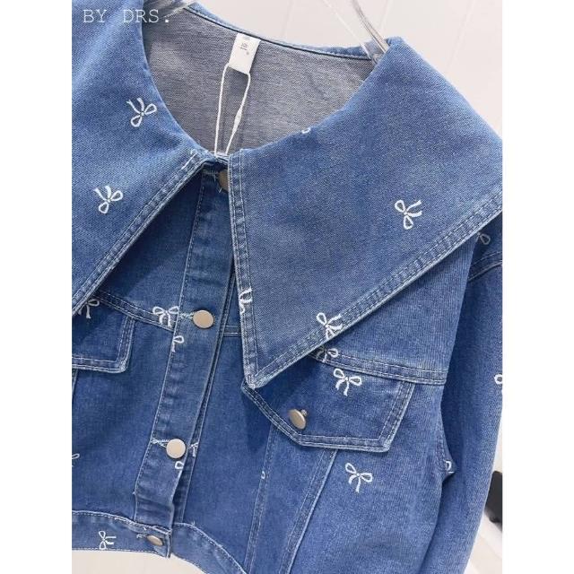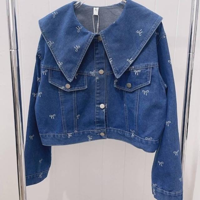BBHONEY韓風翻領 造型滿版蝴蝶結印花 牛仔外套 單寧夾克