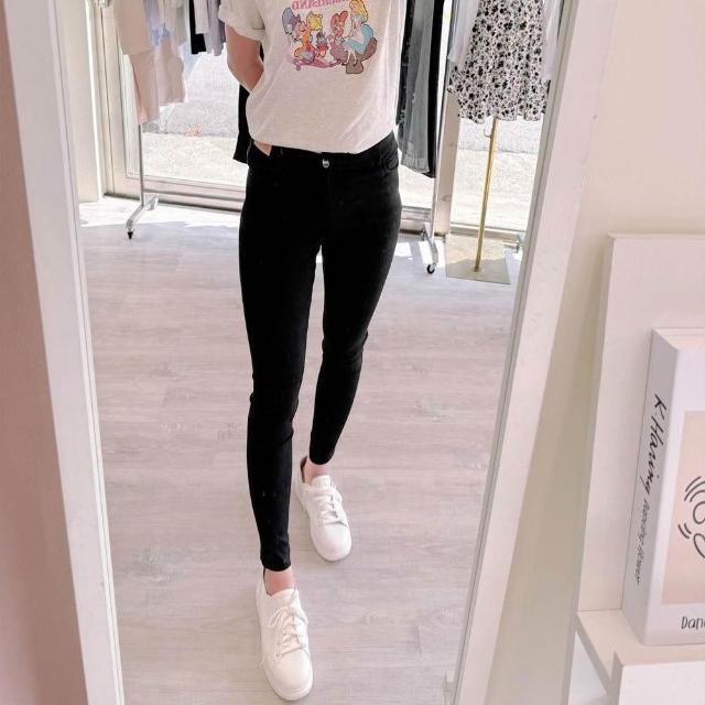 BBHONEY百搭基本款 黑色牛仔褲 皮標純黑超顯瘦彈力小腳褲 S-XL 現貨