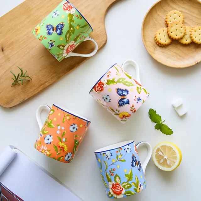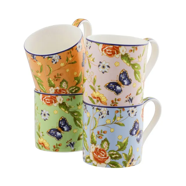 英國 Aynsley小屋花園系列 陶瓷馬克杯4入組(300ml、4色一組)