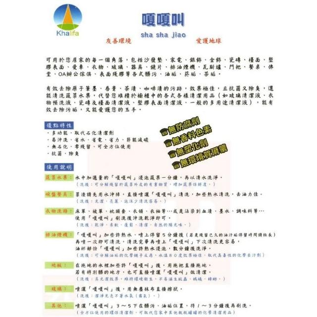 嗄嗄叫嗄嗄叫 環保清潔劑 天然無毒萬用清潔劑(無毒清潔劑)