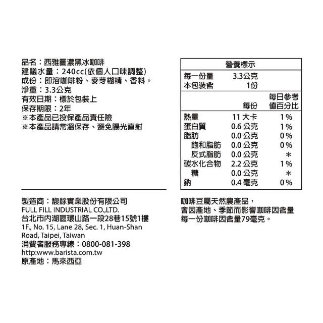 西雅圖濃黑冰咖啡3.3g×50入/袋裝.冰水即溶