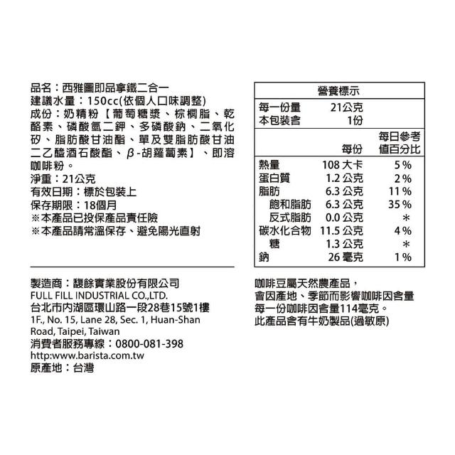 西雅圖即品拿鐵二合一21g×100入/盒裝.好市多COSTCO