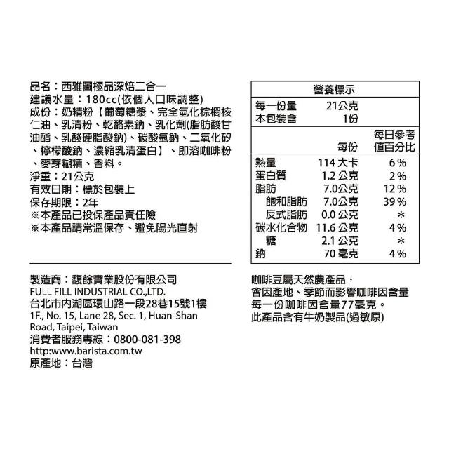 西雅圖-極品深焙二合一21g×50入/袋裝
