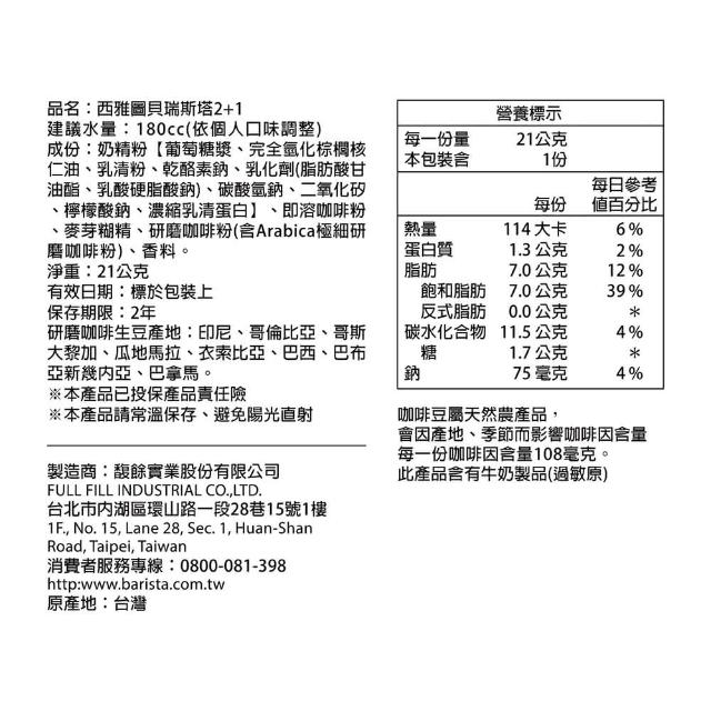 西雅圖貝瑞斯塔2+1_21g×100入/袋裝