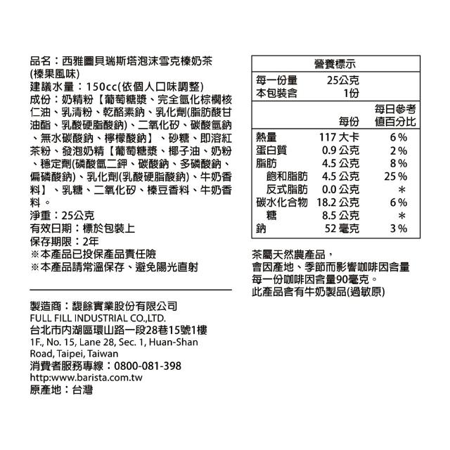 西雅圖泡沫雪克榛奶茶25g×50入/袋裝
