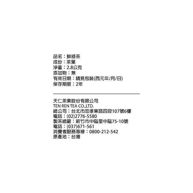 天仁茗茶原片綠茶2.8g×100入/袋裝
