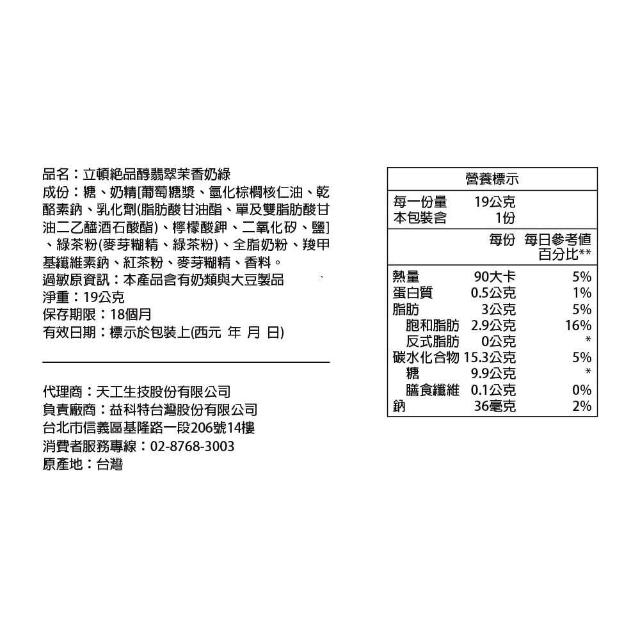 立頓翡翠茉香奶綠19g×15入/原廠袋裝