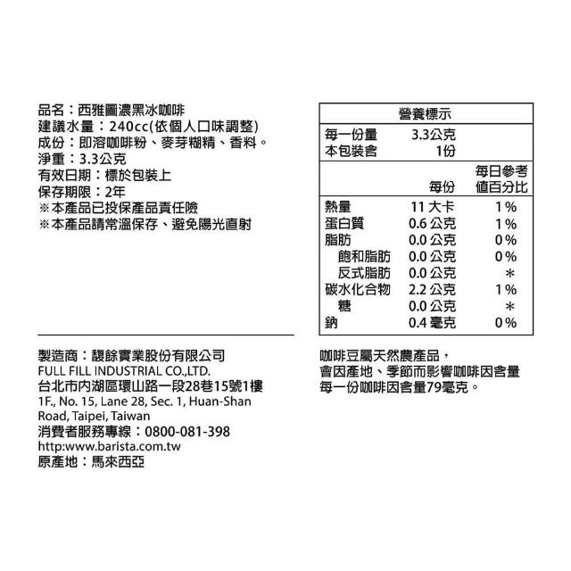 西雅圖濃黑冰咖啡3.3g×100入/袋裝.冰水即溶