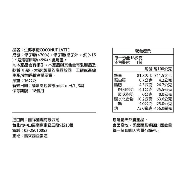 益昌-生椰拿鐵16g×50入/盒裝