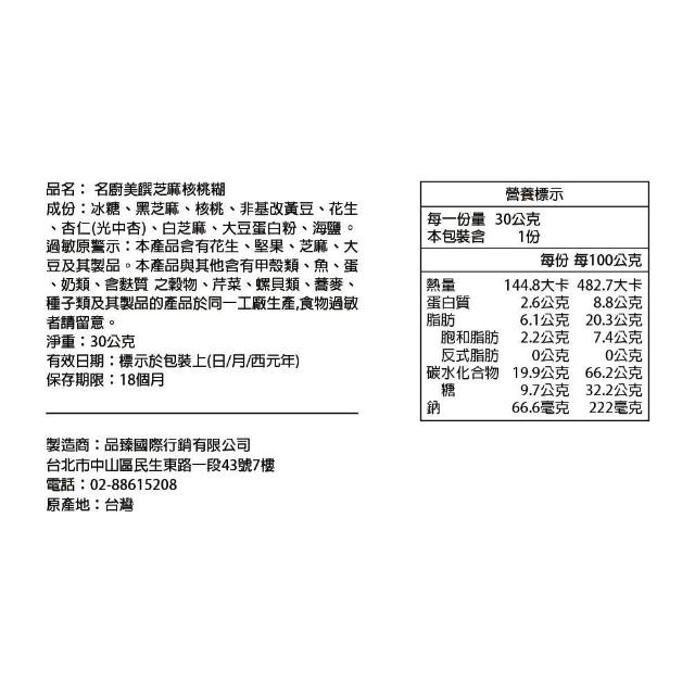 名廚美饌芝麻核桃糊30g×50入/盒裝