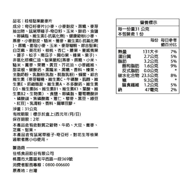 QUAKER 桂格冰沖堅果脆麥片31g×50入/盒裝