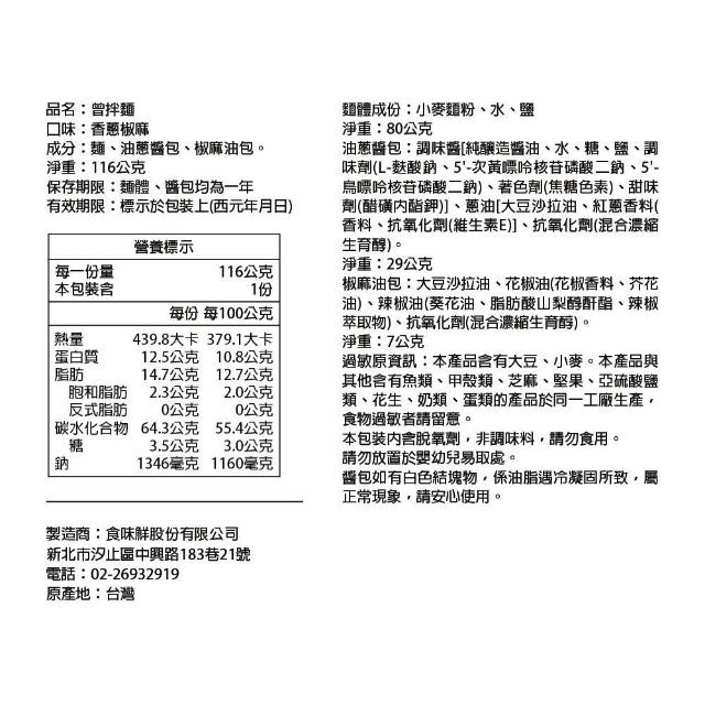 曾拌麵-香蔥椒麻口味116g×12入/盒裝