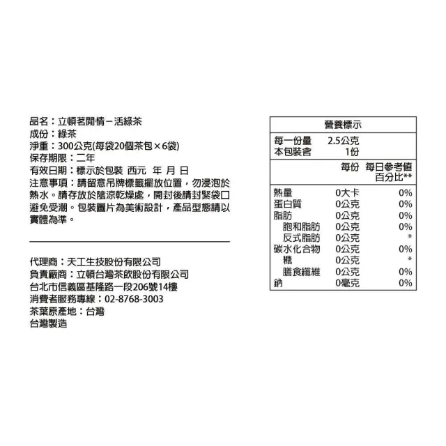 立頓-綠茶三角茶包2.5g×120入/盒裝