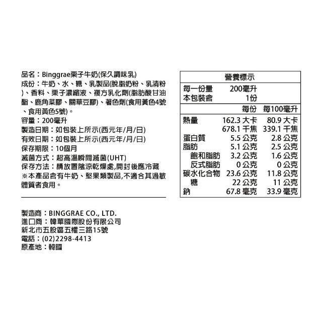 Binggrae栗子牛奶保久調味乳200mL×6入/散裝