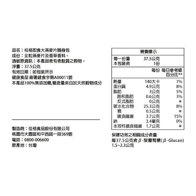 QUAKER 桂格即食大燕麥片隨身包37.5g×44入/盒裝
