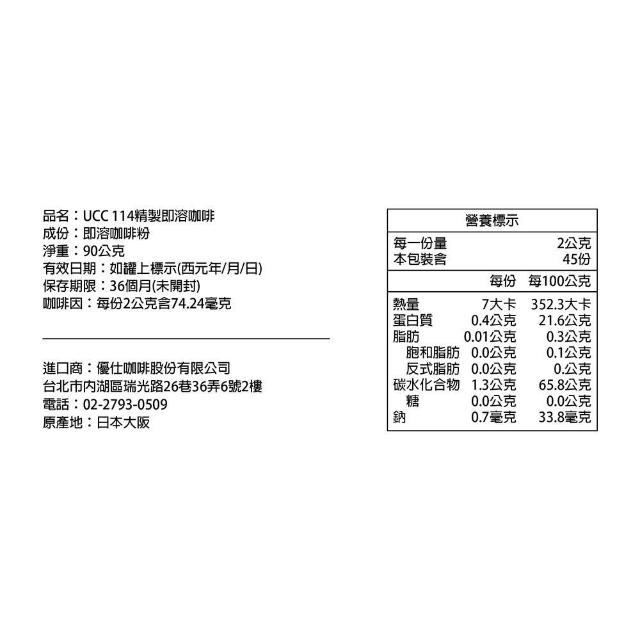 UCC114精製即溶咖啡90g×1入/瓶裝