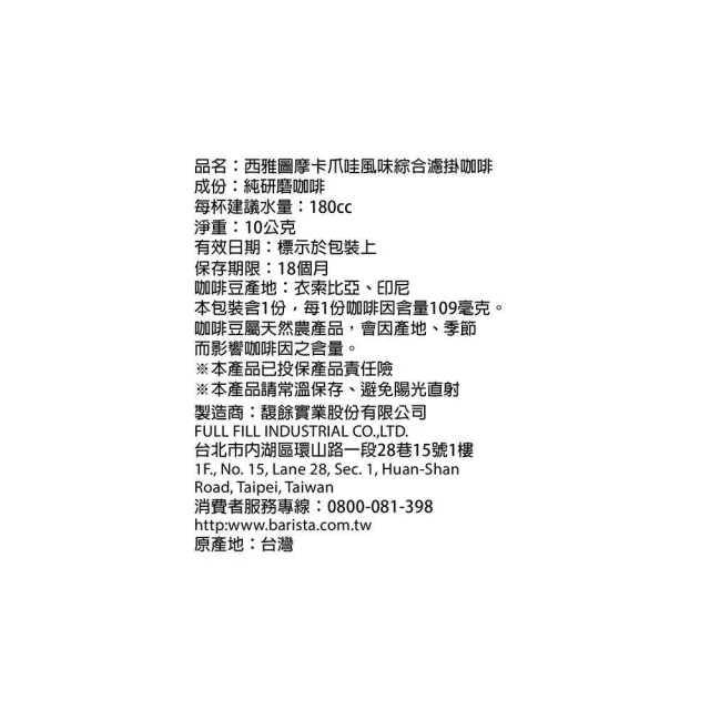 西雅圖摩卡爪哇綜合濾掛咖啡10g×100入/袋裝