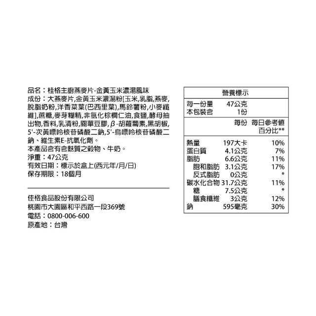 QUAKER 桂格金黃玉米濃湯風味燕麥片47g×30入/盒裝