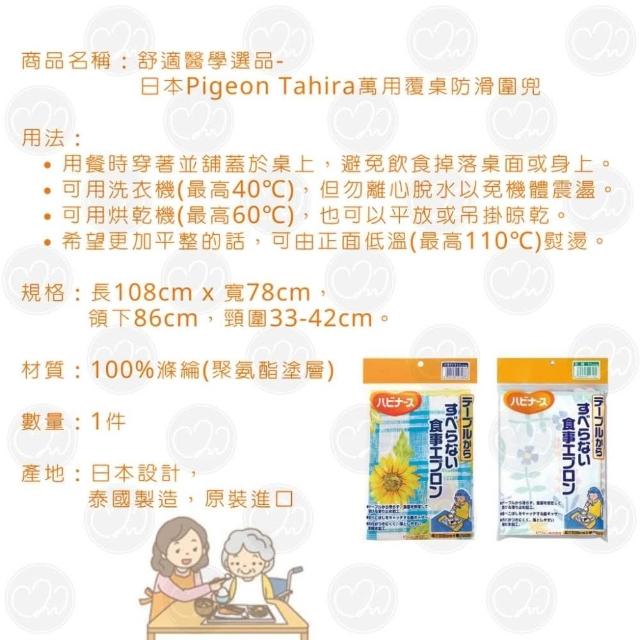 Pigeon 貝親舒適醫學選品|日本Pigeon Tahira 萬用覆桌防滑圍兜|向日葵/花園|長輩用餐防漏罩桌設計
