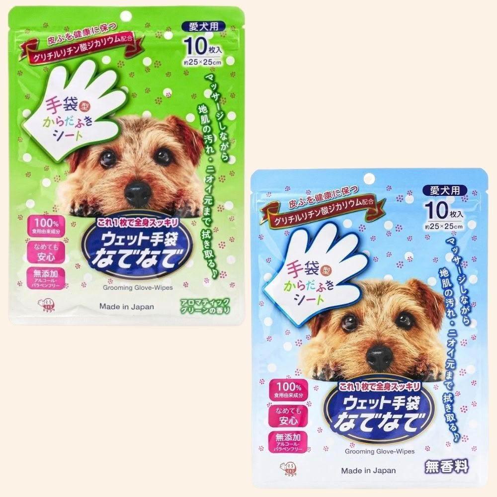 HONDA YOKO舒適醫學選品|日本HondaYoko寵物免沖水洗沐手套|狗狗專用・無香・青草香