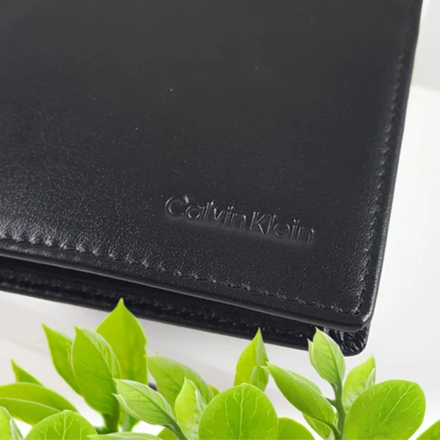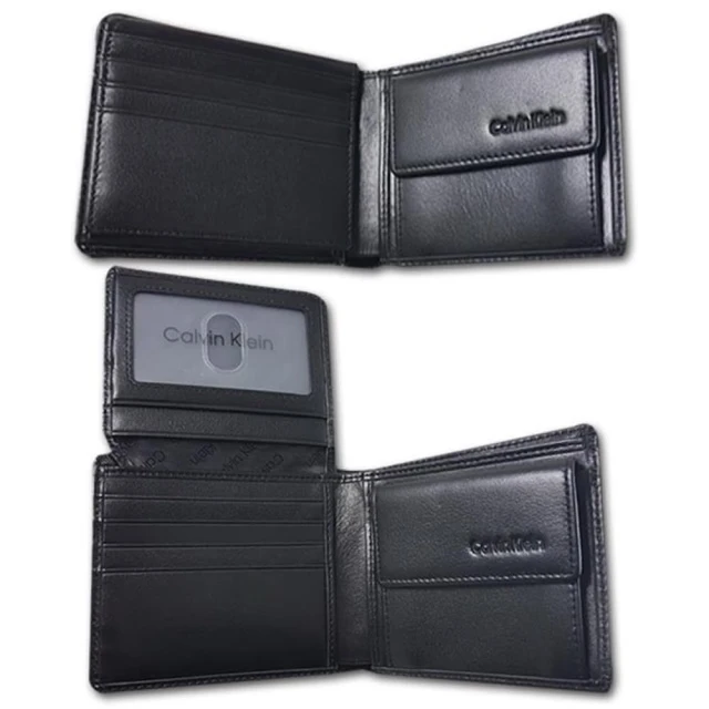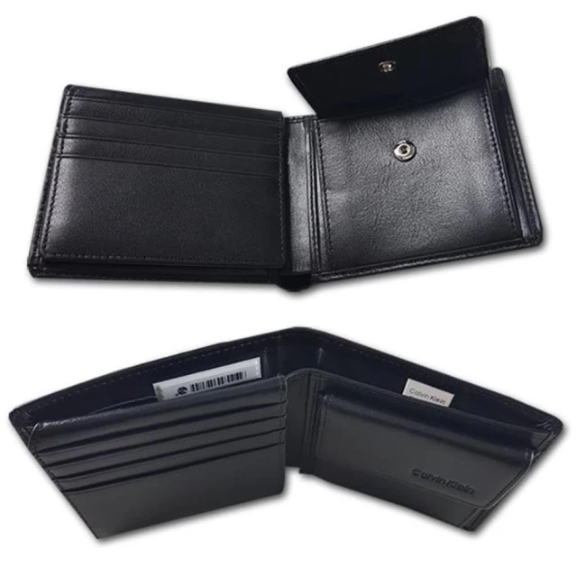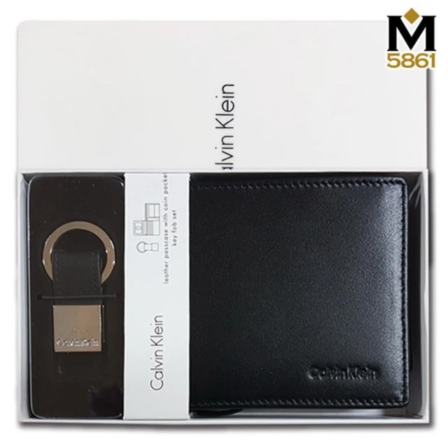 Calvin Klein男皮夾 短夾 牛皮夾 零錢袋 多卡夾+CK鑰匙圈套組 品牌盒裝+原廠提袋/黑零(男夾短夾套組零錢袋)