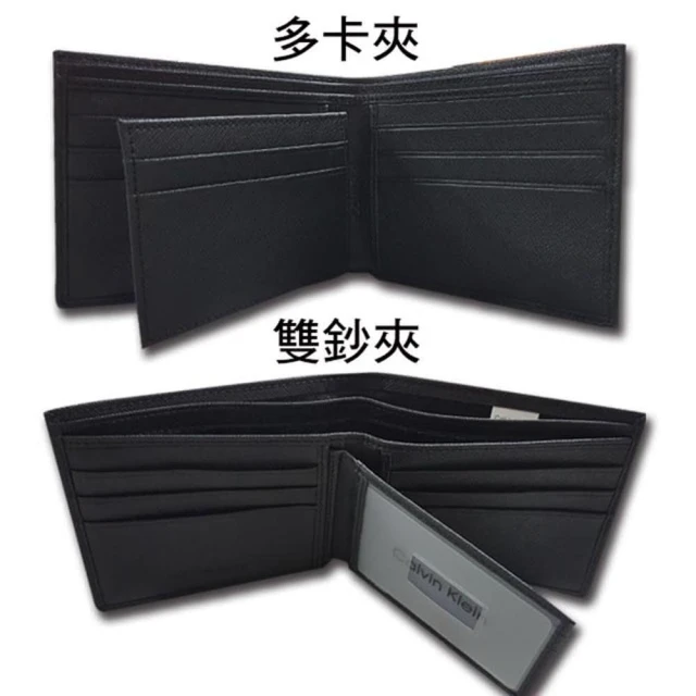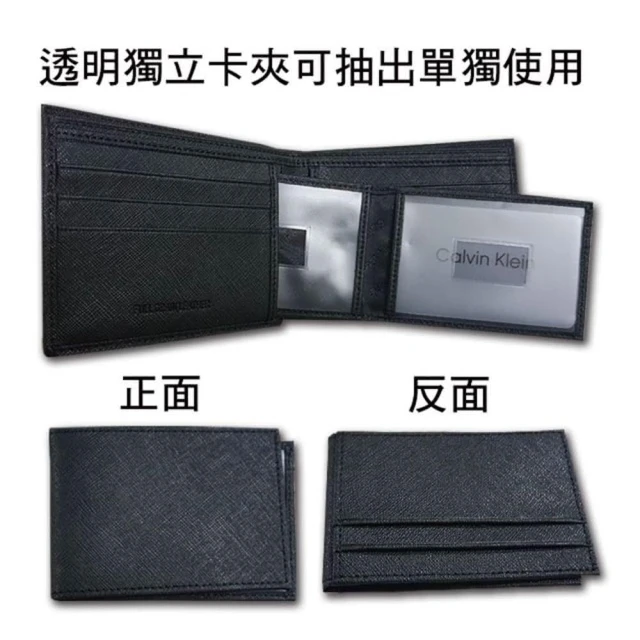 Calvin Klein男皮夾 短夾 防刮皮+CK鑰匙圈套組 附獨立卡夾 品牌盒裝+原廠提袋/黑色(男夾短夾套組鑰匙圈)
