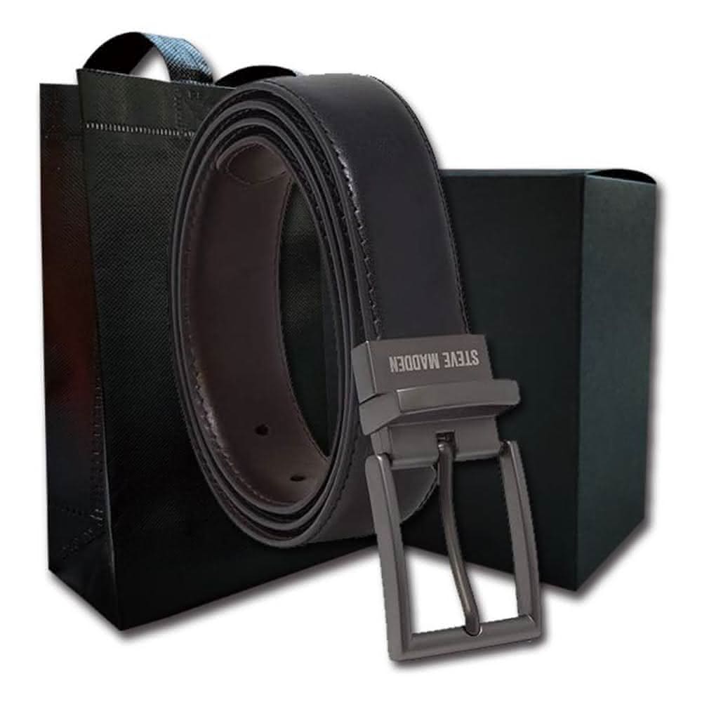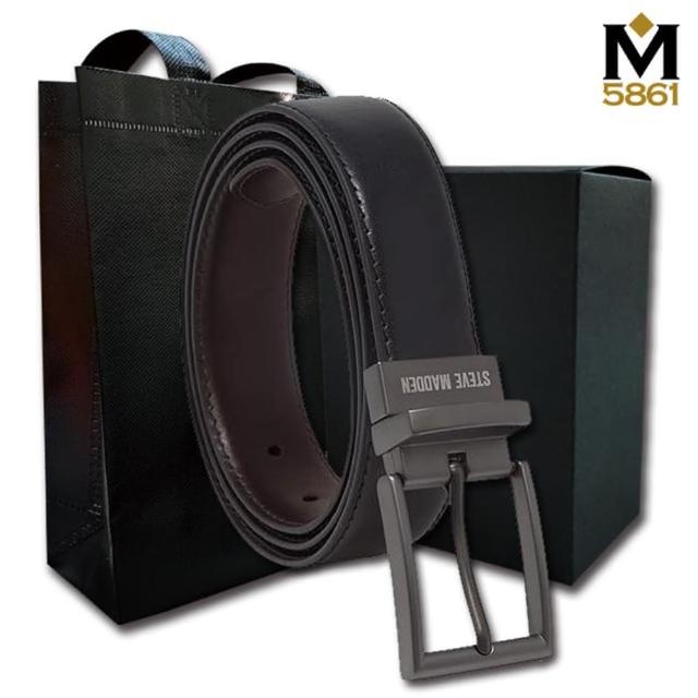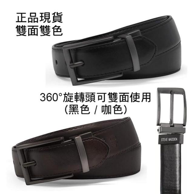 steve madden男皮帶 皮帶 雙面雙色 經典LOGO設計 黑銀扣頭/黑+咖(男皮帶皮革皮帶)