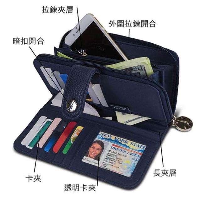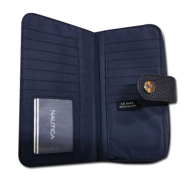 NAUTICA女皮夾 女長夾 牛皮夾 拉鍊零錢層 多卡夾 手拿包 束扣開合/藍色(女夾長夾女長夾)