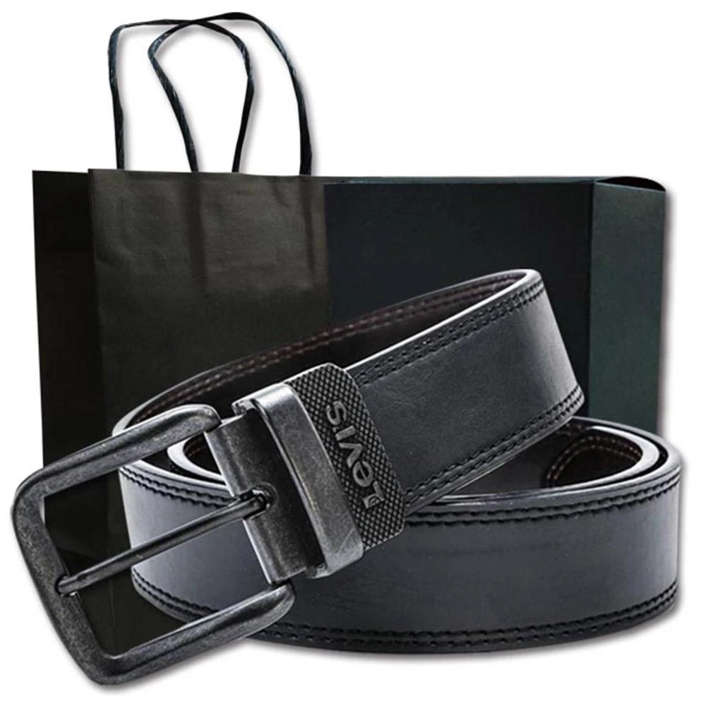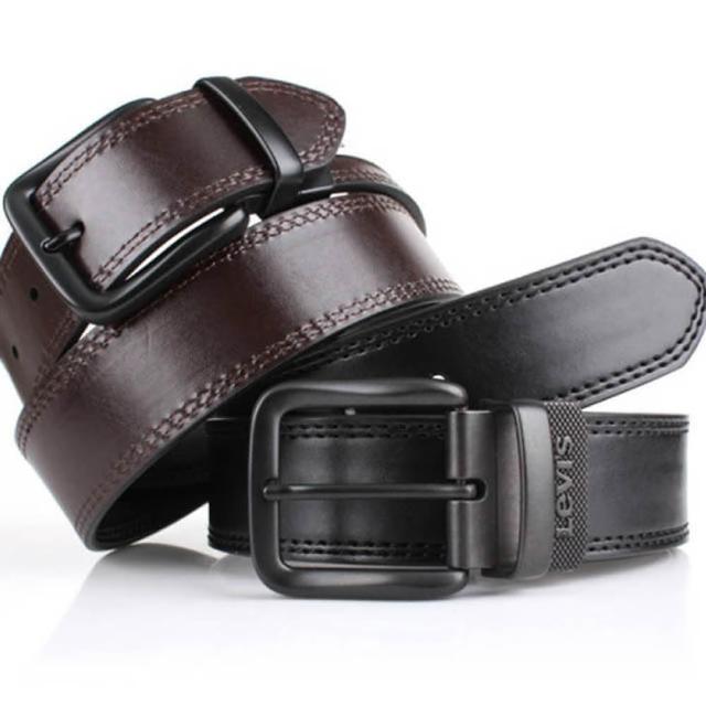 LEVIS男皮帶 皮帶 雙面雙色 斜紋浮雕LOGO 黑銀扣頭/黑+咖(男皮帶腰帶Levis皮帶)