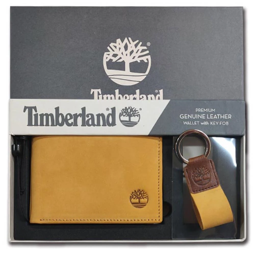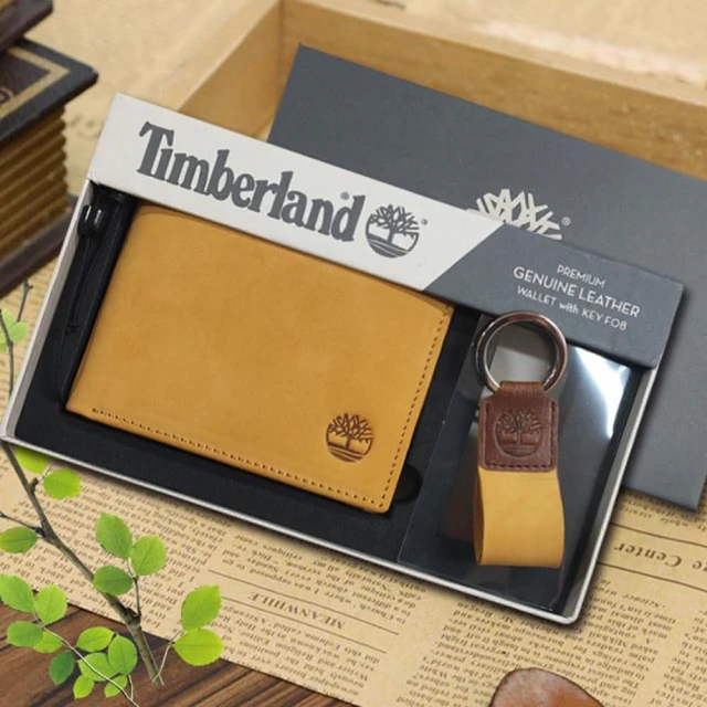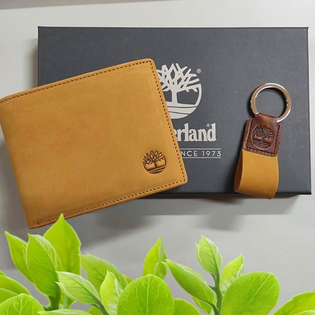 Timberland男皮夾 短夾 麂皮 牛皮夾 零錢袋 多卡夾+鑰匙圈套組 品牌盒裝+原廠提袋/黃駝色(男夾短夾零錢袋)