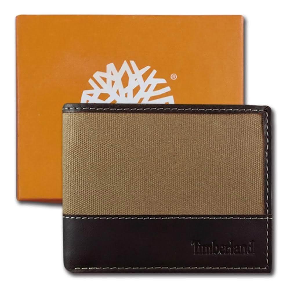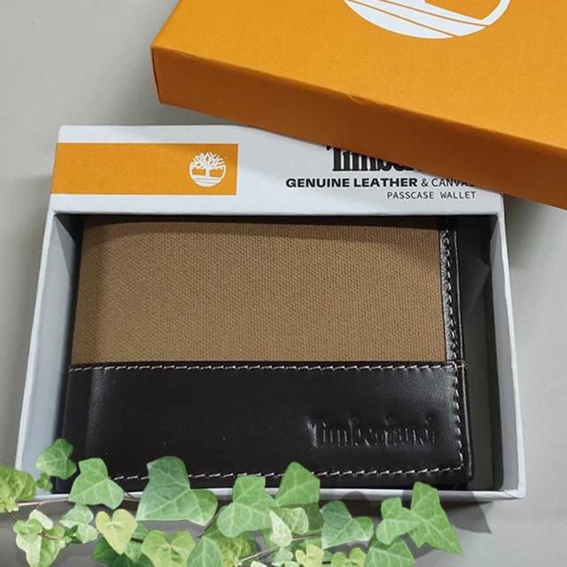 Timberland男皮夾 短夾 帆布 牛皮夾 多卡夾 大鈔夾 品牌盒裝/黃褐色(男夾短夾男皮夾)