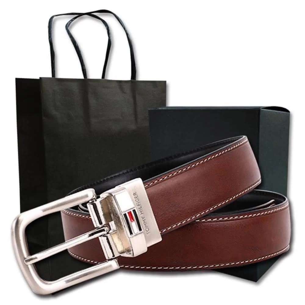 TOMMY HILFIGER男皮帶 皮帶 雙面雙色 大LOGO標設計 銀扣頭/咖+黑(男皮帶皮革皮帶腰帶)