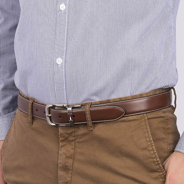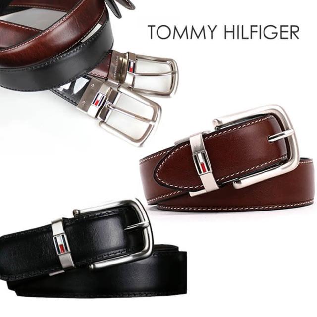 TOMMY HILFIGER男皮帶 皮帶 雙面雙色 大LOGO標設計 銀扣頭/咖+黑(男皮帶皮革皮帶腰帶)