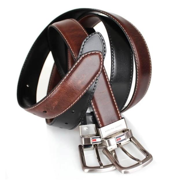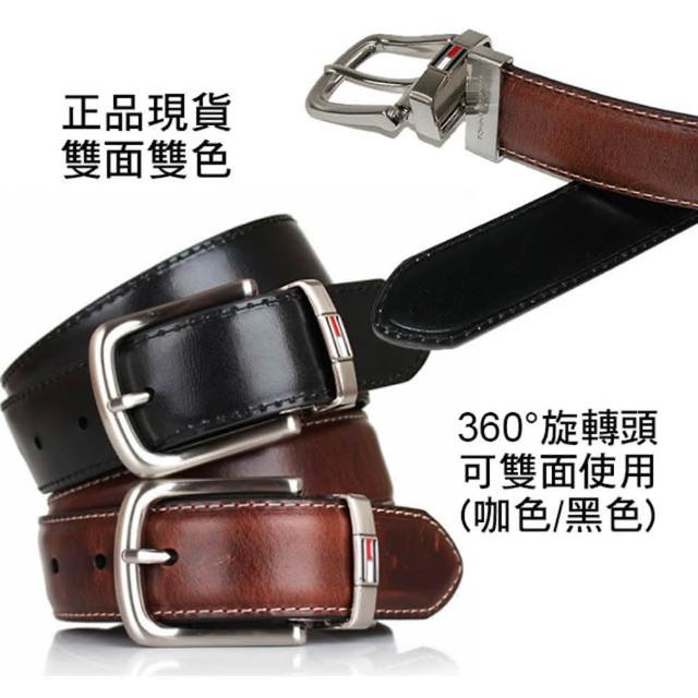 TOMMY HILFIGER男皮帶 皮帶 雙面雙色 大LOGO標設計 銀扣頭/咖+黑(男皮帶皮革皮帶腰帶)