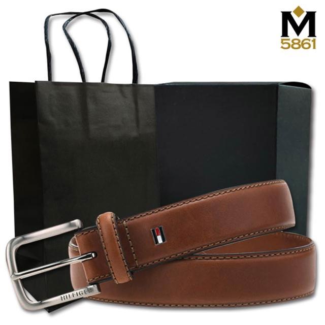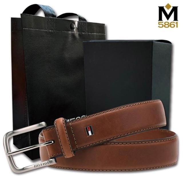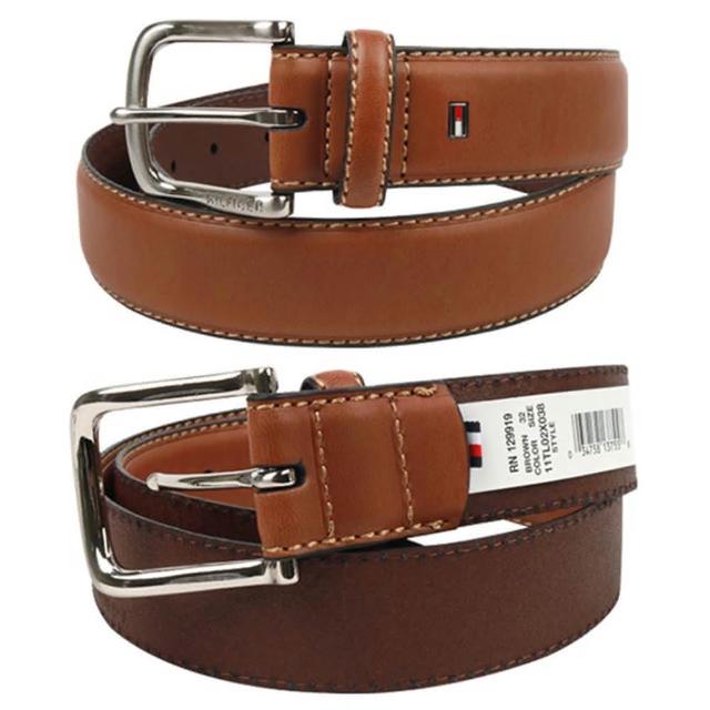 TOMMY HILFIGER男皮帶 皮帶 雙LOGO設計 銀扣頭/咖色(男皮帶皮革皮帶腰帶)